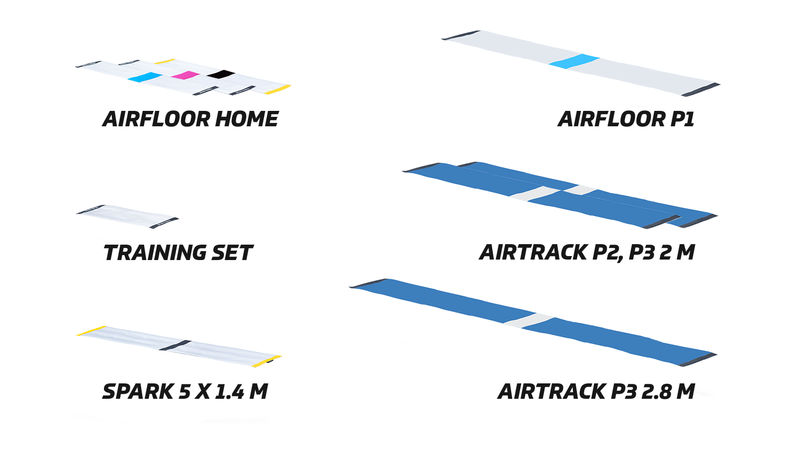 Vill du skapa en ännu längre träningsyta? Anslut två av våra AirFloors, AirTrack P2 eller AirTrack P3 och skapa ett betydligt längre och rymligare AirTrack. Vi erbjuder ett alternativ som säkerligen passar dina behov, oavsett storlek, både för utrustning som avses nyttjas för hemträning men även för betydligt större AirTracks skapelser.